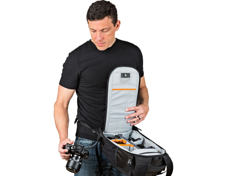 Главная «фишка» серии Flipside - доступ к оборудованию осуществляется через заднюю панель. Это означает, что пока рюкзак у вас на спине, никто не сможет незаметно открыть его в толпе или транспорте. Более того, вы можете получить доступ к камере, не снимая рюкзак полностью: просто переверните его на живот, используя поясной ремень как опору, - это создает удобную «рабочую станцию» прямо на весу.