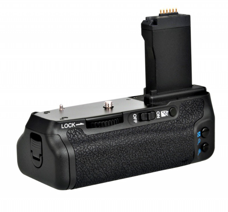 Батарейный блок Meike Canon 760D/750D для фотоаппарптов Canon 760D/750D. Корпус батарейного блока и прорезиненные вставки имеют ту же фактуру, что и фотоаппарат, благодаря чему не нарушаеться общий вид.