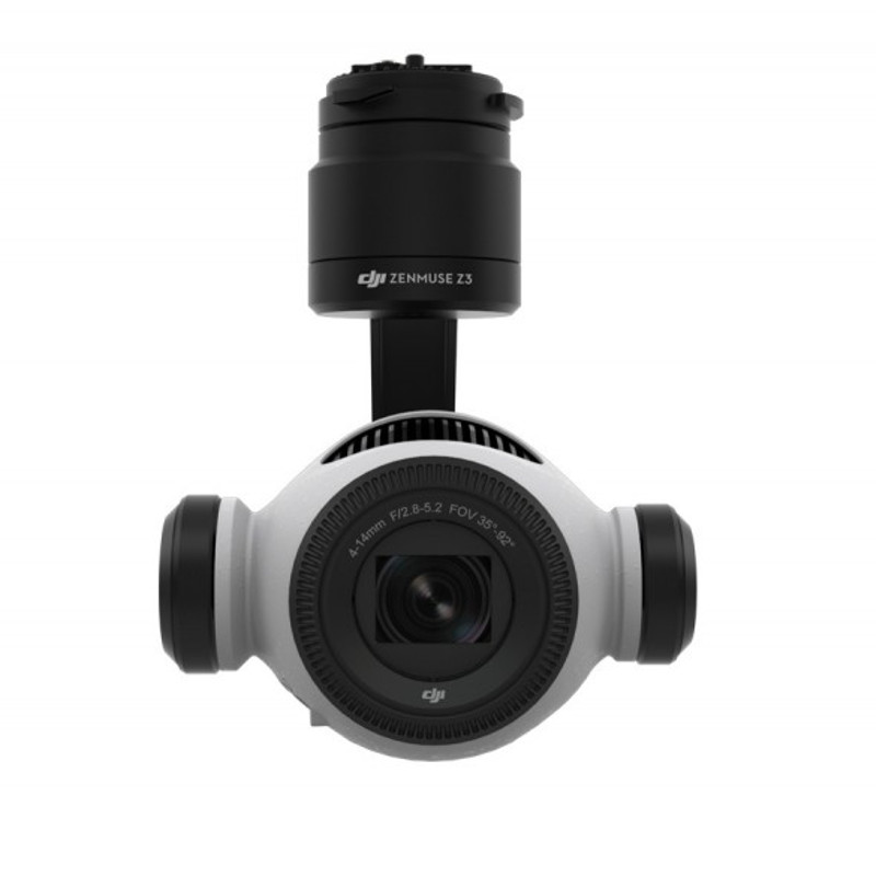 Zenmuse Z3 — первая в мире камера с оптическим зумом, созданная специально для аэросъемки. Zenmuse Z3,оснащена объективом с 3.5x оптическим зумом и 2x цифровым зумом. CMOS сенсор камеры с кроп-фактором 1/2.3, поддерживает запись 4K видео и съемку 12 Мп фотографий. Подобно другим аналогичным 3-осевым подвесам, Zenmuse Z3 может устанавливаться на квадрокоптеры DJI и передавать онлайн HD видео посредством приложения DJI GO app. Камера Zenmuse Z3 совместима с Inspire1, Matrice 100 иMatrice 600.