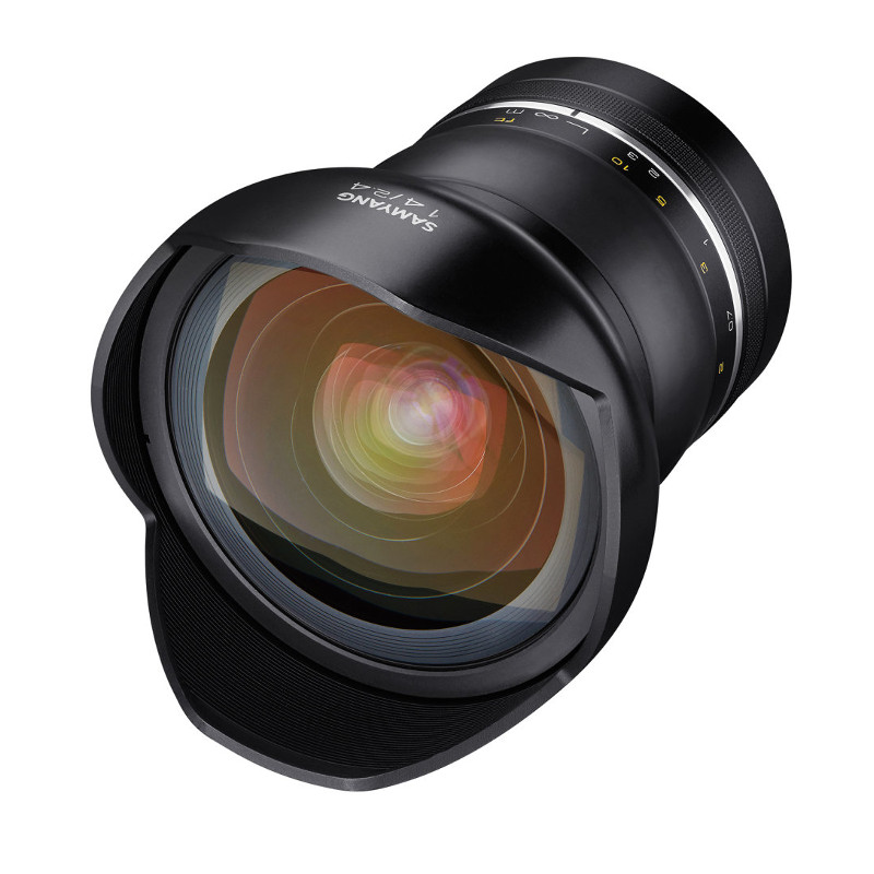 Samyang XP 14мм f/2.4 –сверх широкоугольный объектив премиум класса специально разработанный для зеркальных камер Canon. Объектив выделяется сложной оптической схемой, содержащей 18 элементов в 14 группах. Для практически всех возможных искажений и создания идеального изображения в объективе используется целый ряд специальных линз: два асферических и один гибридный асферический элементы, два элемента со сверхнизкой дисперсией и один элемент со сверхвысоким показателем преломления. На все оптические поверхности нанесено фирменное просветление Ultra Multi-Coating. Корпус объектива выполнен из алюминиевого сплава, что позволяет получить более жесткую конструкцию, для обеспечения идеальных характеристик.