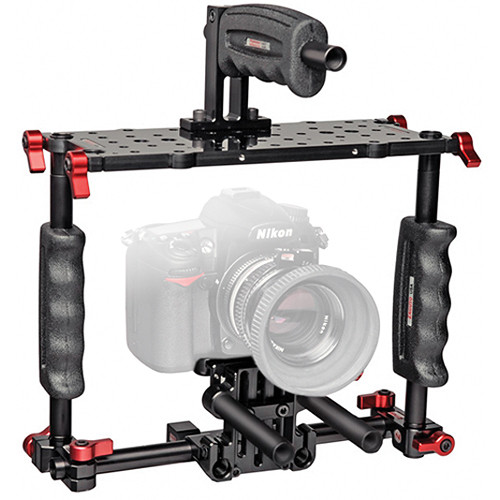 Верхняя рукоятка прикрепляется к пластине Zwiss через два винта 1/4 "-20 (и, конечно, съемный, чтобы освободить место или уменьшить вес). Ручка облегчает захват видео с малых углов и облегчает транспортировку системы.