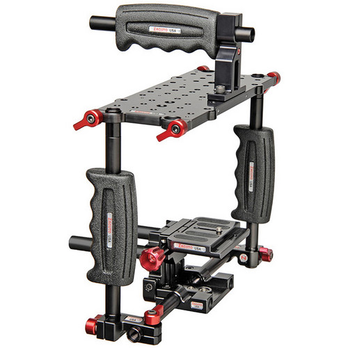 Zacuto Zwiss Cage - вспомогательная клетка для видеокамеры DSLR, которая обеспечивает двойные рукоятки, верхнюю ручку для низкоуровневых снимков, пару стандартных 15-мм стержней для крепления фокуса. По всей площади Zwiss Plate клетки расположены отверстия 1/4 "-20 и 3/8" -16 для крепления принадлежностей в различных конфигурациях, для удобства и оптимального баланса: аудиоприемники, свет, мониторы и многое другое ,