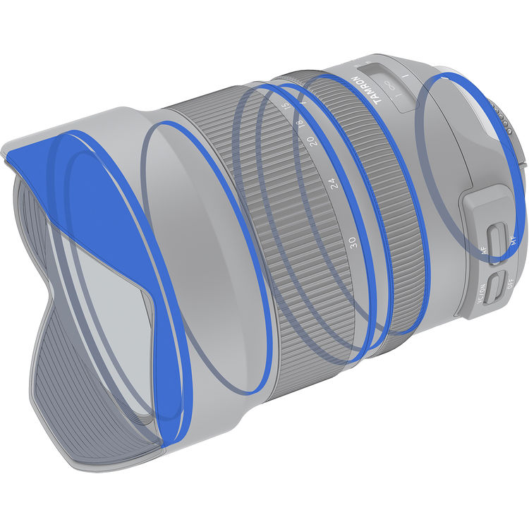 3. Покрытие eBAND обеспечивает превосходные характеристики изображения, устраняя блики и отражения. В дополнение к используемому напылению BBAR (широкополосное антирефлекторное покрытие), Tamron использовал покрытие eBAND (напыление с высокой пропускной способностью и расширенной полосой радиально-зависимости), которое также используется в данном объективе. Эта комбинация покрытий обладает превосходными свойствами анти-отражения, что особенно важно в сверхширокоугольных объективах, которые особенно чувствительны к бликам и ореолам из-за широкого угла обзора. Покрытие обеспечивает высокое качество картинки и кристально чистые изображения, сводя к минимуму нежелательные блики, попадающие на матрицу.