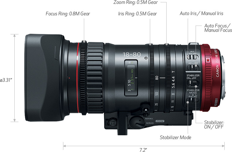 Революция в съемке видео. Доступный широкоформатный кинообъектив Canon CN-E18-80mm T4.4 L IS KAS S оснащён встроенным сервоприводом и обладает высококлассной функцией невероятно плавного масштабирования и перевода фокуса.