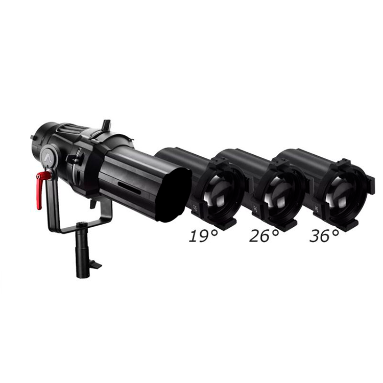 Предлагаемый набор модификатора постоянного студийного освещения Aputure Spotlight Mount Set with Lens состоит из корпуса, 1 линзы, формирующей световой поток с одним из 3 разных углов: 19°, 26°, 36° (на выбор) и студийных осветительных аксессуаров. Корпус насадки изготавливается из алюминиевого сплава по технологии литья под давлением, поэтому от невероятно прочен, не подвержен деформации и не перегревается. В корпусе модификатора сделаны пазы для установки гобо, дополнительных шторок, которые придают освещению необходимые нюансы, акценты, рисунок и драматизм. Сменные блоки с линзами для других углов можно купить дополнительно.