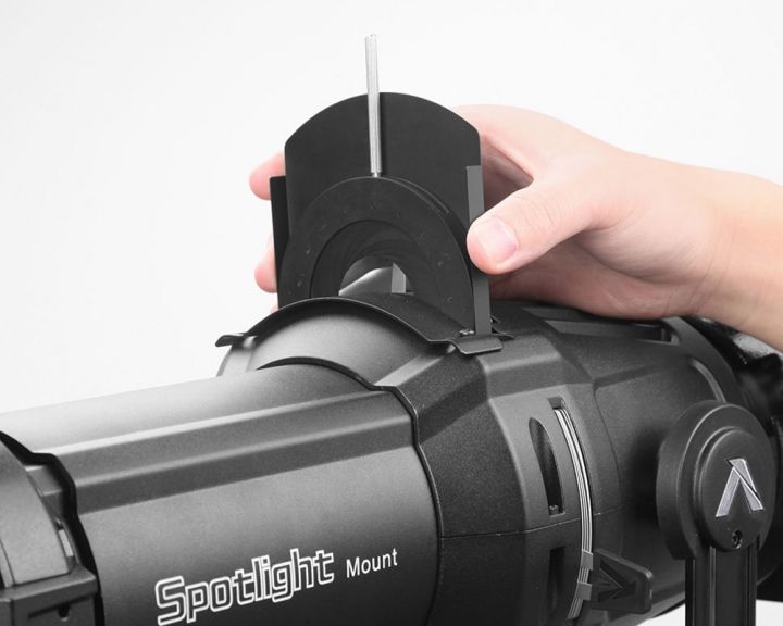 Применение новой технологии фокусировки светового потока на насадке Aputure Spotlight Mount Set сводит к минимуму хроматические аберрации по краю светового круга. Кроме того, этот модификатор обеспечивает более резкую (четкую) окантовку краев светового пятна - до 1 мм на расстоянии 5 метров! По сравнению с показателями других аналогичных эллипсоидальных насадок, это выше в десятки раз. А задействовав ещё и внутренние шторки (типа затворной диафрагмы фотоаппарата) и гобо, видеомейкеры смогут моделировать и контролировать любое видеоосвещение на съемочной локации до мельчайших деталей!