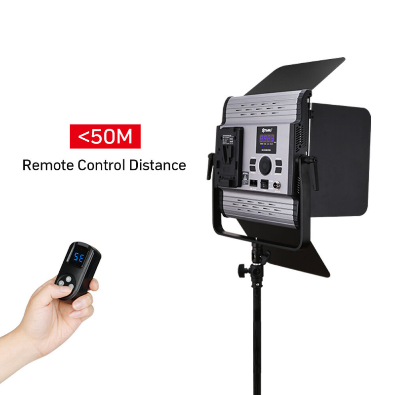 Все органы управления Tolifo GK-S100B Pro расположены на задней стороне осветителя, рядом с которыми предусмотрено информативный экран и ряд индикаторов для отображения и настройки параметров LED панели. Кроме этого, LED панель Tolifo GK-S100B Pro оснащена двумя портами DMX 512 (RJ45 - вход и выход) для управления осветителем с помощью DMX контроллеров, приемником 2,4 ГГц, который позволяет подключить комплектный пульт дистанционного управления и настраивать параметры осветителя удаленно, на расстоянии до 50 метров (доступно 99 каналов синхронизации), и модулем Wi-Fi для настройки параметров с помощью Вашего смартфона или планшета.