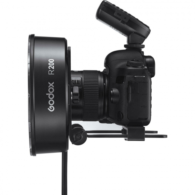 Кольцевая голова Godox Witstro R200 устанавливается и используется в нескольких вариантах. Легкий импульсный источник весом всего 0.64 кг, можно установить на фотокамеру с помощью комплектного кронштейна, что даст фотографу полную свободу в выборе ракурса при съемке.