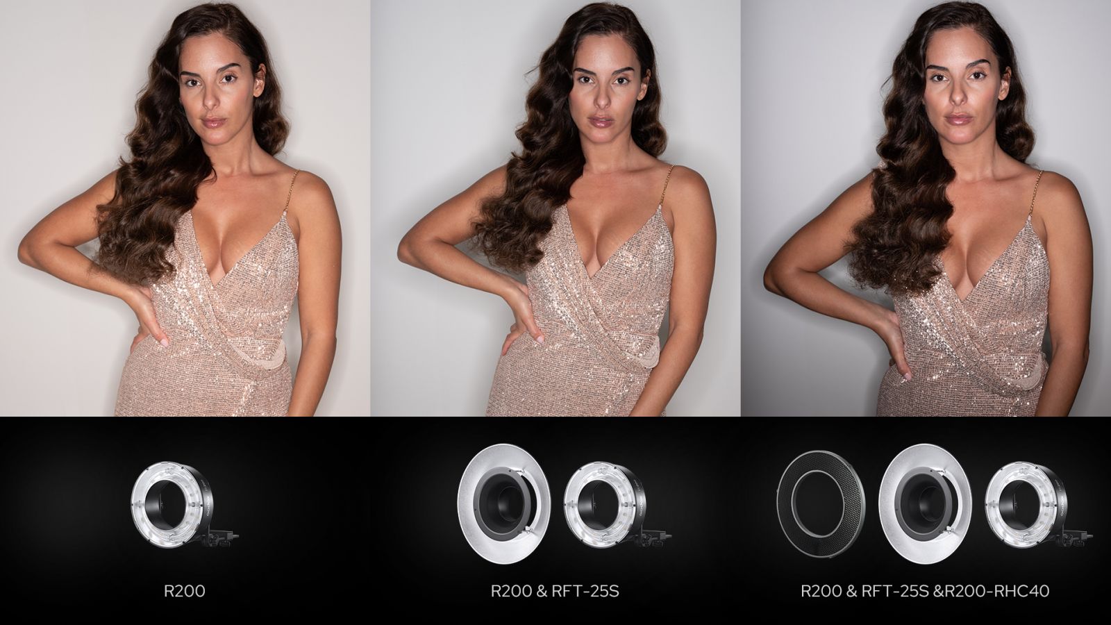 Сотовые насадки на корпус вспышки R200- HC20, R200- HC30, R200- HC40 и сотовые насадки на рефлектор R200- RHC20, R200- RHC30, R200- RHC40 с разными углами ограничения светового потока (20°, 30° и 40° соответственно) сужают широкий световой луч, формируемый импульсной головкой, создавая управляемый и направленный световой поток. Насадка используется для уменьшения световых потерь и выделения свето-теневых акцентов.