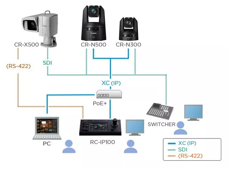 Камера Canon CR-N300 может похвастаться поддержкой широкого спектра протоколов потоковой IP-передачи данных в формате вплоть до 4K UHD со скоростью 30 кадров в секунду и управления ею, что позволяет лучше контролировать ваши рабочие потребности. Эта камера поддерживает основные протоколы, среди которых NDI|HX, RTMP, RTP/RTSP, RTMPS, SRT, FreeD и Canon XC, а потому подходит для большинства новых или существующих систем, что делает ее чрезвычайно удобным выбором.