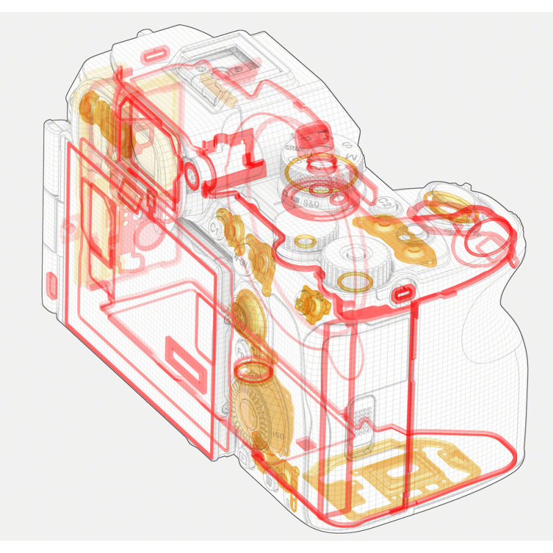 Для более надежного использования на открытом воздухе все швы корпуса, кнопки и крышка батарейного отсека уплотнены. Тщательно продуманная кнопка блокировки объектива и амортизирующие прокладки вокруг крепления также помогают противостоять пыли и влаге.