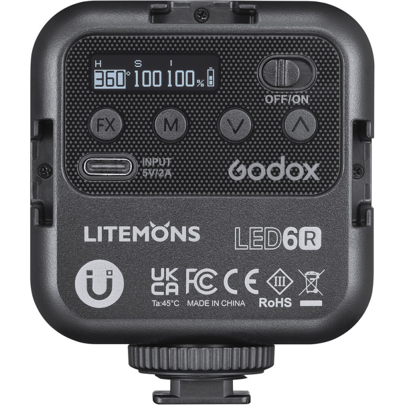 Godox LITEMONS LED6R RGB имеет максимальную мощность 6 Вт диодного света с возможностью регулировки от 1 до 100%, что обеспечивает комфортность работы на различных расстояниях от объекта съемки.