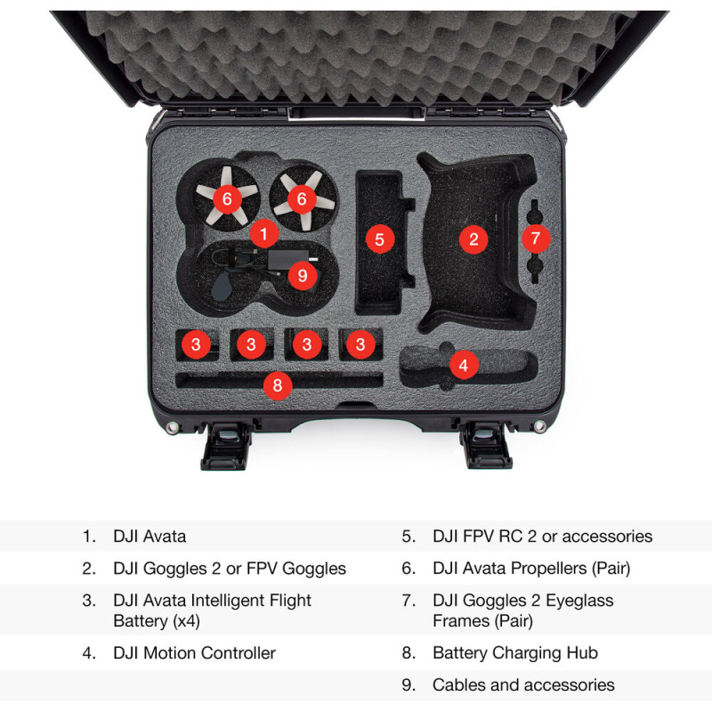 Высококачественный пенопласт с закрытыми ячейками предварительно вырезан, чтобы соответствовать вашим DJI™ AVATA, Goggles и Fly More Combo.