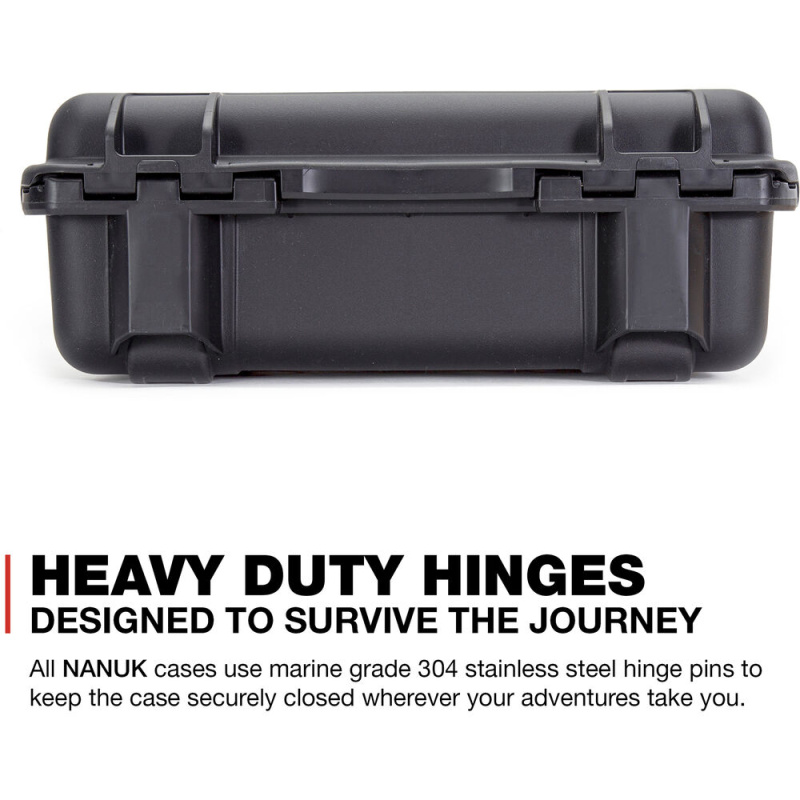 Сверхпрочная нейлоновая конструкция и фурнитура из нержавеющей стали гарантируют, что ваши важные предметы останутся в безопасности в водонепроницаемом футляре NANUK независимо от того, куда вас заведет ваше путешествие.