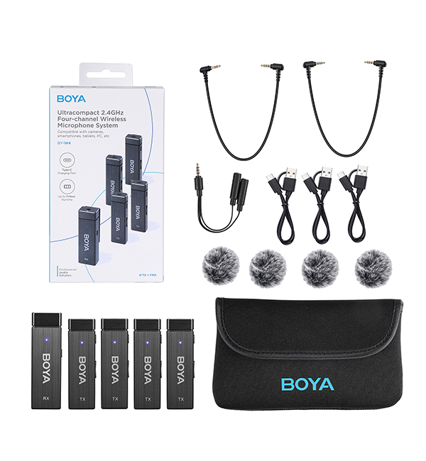 BY-W4-это четырехканальная Беспроводная микрофонная система, которая обеспечивает качество трансляции и надежную производительность с четким, четким звуком. Благодаря четырем каналам, он идеально подходит для многоличных интервью, выступлений в реальном времени, трансляции в реальном времени, конференций, панельных бесед или других мероприятий.