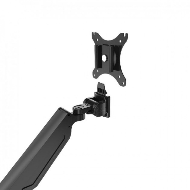 Газовая пружина в основании крепления позволяет поднимать монитор на удобную высоту, а шарнирный крепеж регулировать положение монитора на вашем столе.