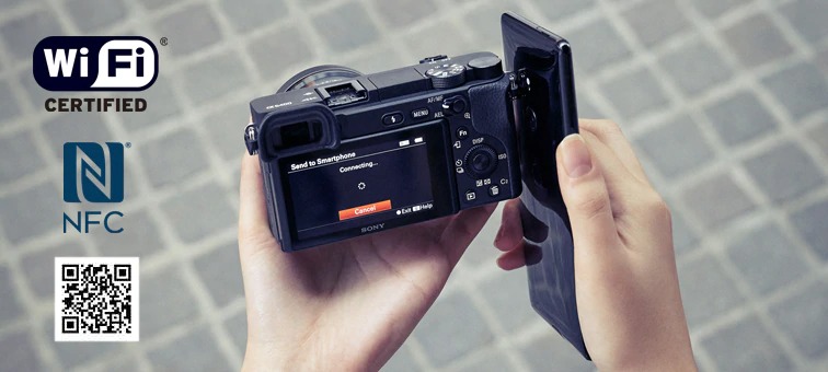 Пульт ДУ One Touch позволяет превратить мобильное устройство в видоискатель и пульт дистанционного управления, в то время как функция обмена в одно касание дает возможность отправлять фотографии и видео н свое устройство для публикации в социальных сетях. Камера также может получать геоданные по Bluetooth®25. (Эти функции мобильного устройства доступны после установки приложения Imaging Edge от Sony26.)