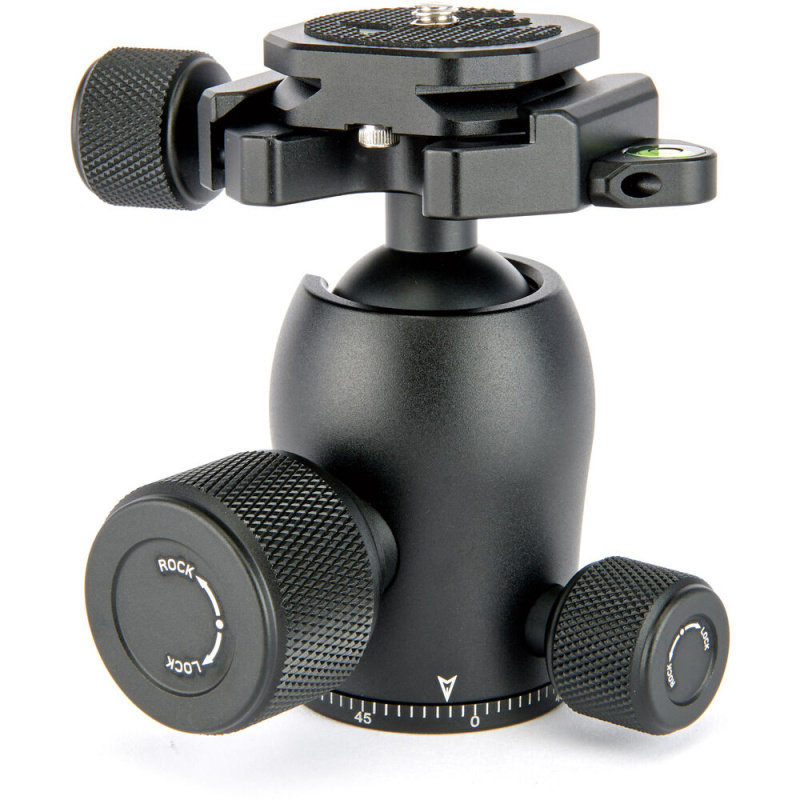 AirHed Pro имеет ручку с накаткой, которая используется для управления шаровой головкой. Шар можно затягивать в различных положениях, а всю головку можно поворачивать на 360 ̊. Медная ручка управления затягивает зажим, поэтому можно надежно удерживать камеру на месте. Голова оснащена пузырьковым уровнем, что обеспечивает идеальное выравнивание изображений.