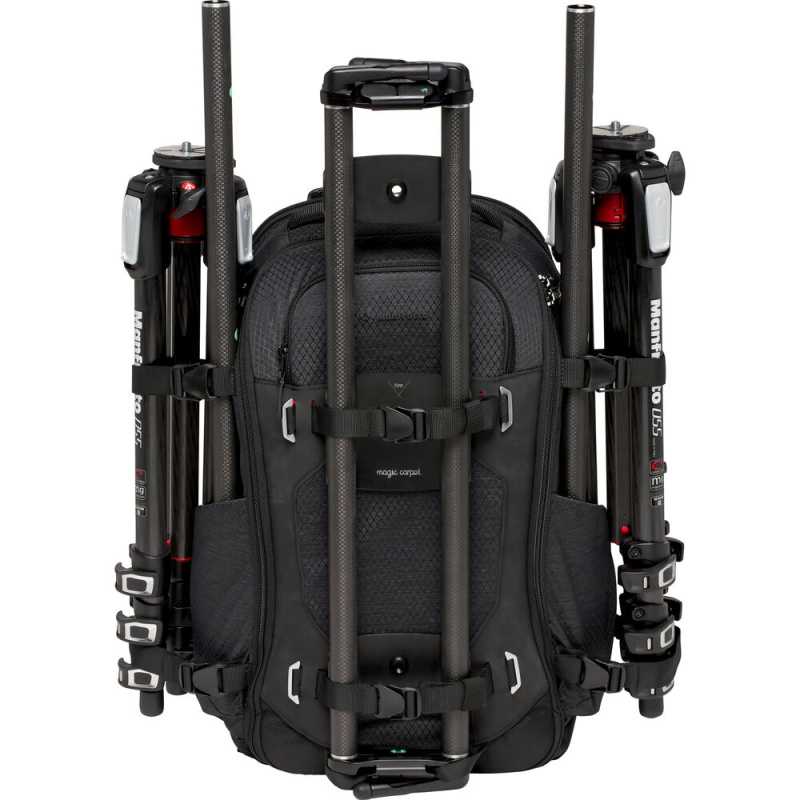 PRO Light Flexloader L - это рюкзак, который буквально расширяется в соответствии с вашими потребностями, созданный для профессиональных цифровых зеркальных или беззеркальных фото и видео оборудования. Он имеет полный передний доступ к полностью мягкому отделению для снаряжения с настраиваемым интерьером , переднее организационное отделение на внутренней панели с прозрачными карманами для мелких аксессуаров, несколько точек крепления для штатива и ползунки с расширениями и прилагаемый чехол-органайзер для аксессуаров. Сумка вмещает профессиональные зеркальные или беззеркальные фотоаппараты с портретной ручкой, несколько объективов, складные дроны и многое другое. Задний карман - это расширяемое отделение, которое подходит для 3-осевых стабилизаторов CSC / VDSLR и других аксессуаров . Этот отсек полностью отделен от отсека для основной камеры и обеспечивает дополнительное пространство без ущерба для вместимости основного отсека.