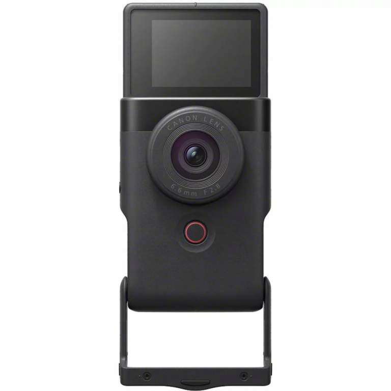 Компактная камера PowerShot V10 очень проста в использовании – даже если вы абсолютный новичок в съемке видеоблогов, вы можете установить ее на встроенную регулируемую подставку, наклонить откидной экран так, чтобы видеть себя, затем установить режим Auto (Авто) и просто нажать кнопку Record (Запись ), когда будете готовы.