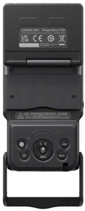Корпус Canon PowerShot V10 напоминает большой смартфон — за исключением того, что для съёмки горизонтального видео устройство не нужно поворачивать. Новинка также оснащена подставкой: пользователь может установить камеру на стол и снимать селфи-видео, контролируя процесс при помощи двухдюймового сенсорного ЖК-дисплея.