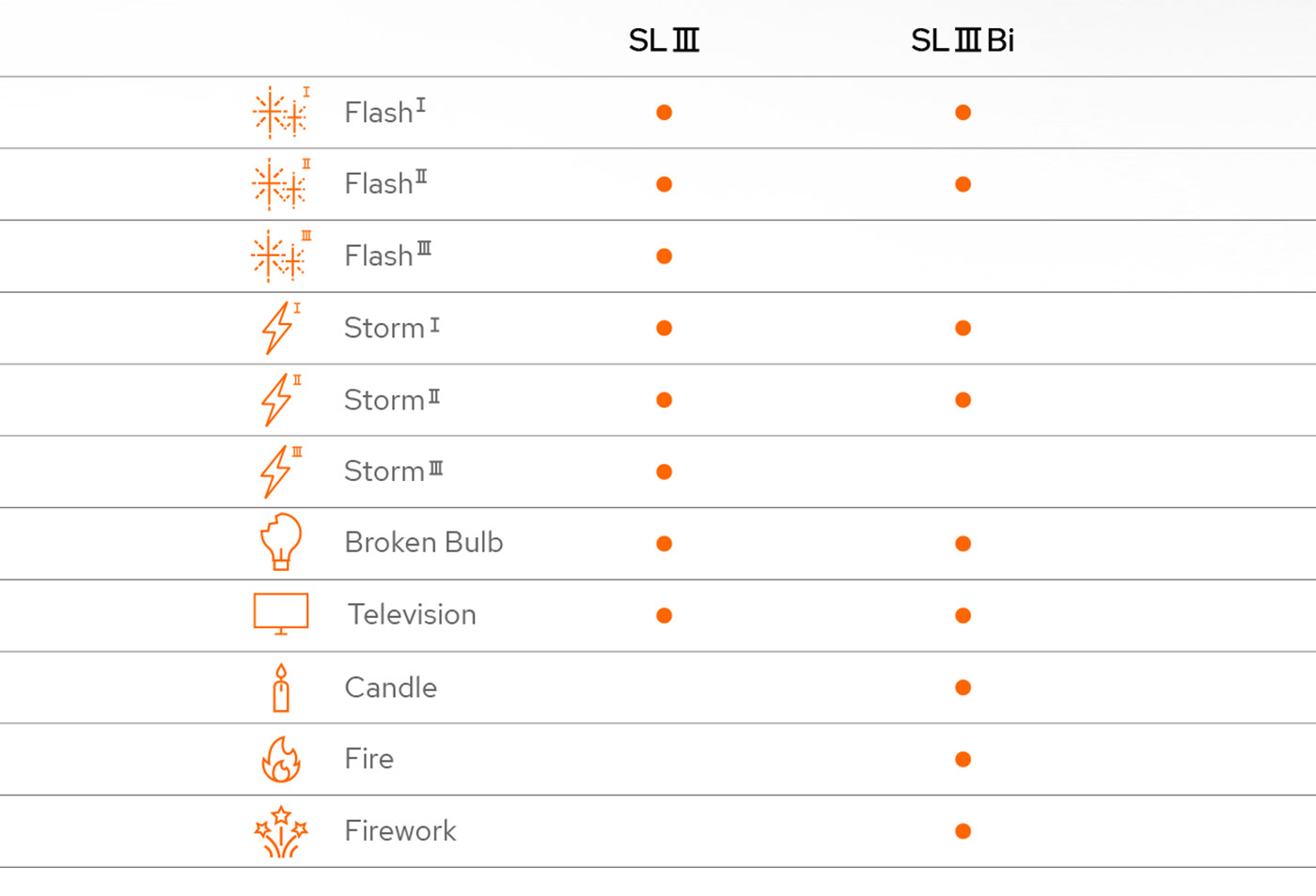 SL300III также имеет восемь специальных эффектов, включая вспышку 1, 2, 3, разбитую лампочку, шторм 1, 2, 3 и телевидение. Светильник имеет хорошо продуманное крепление, которое может вращаться на 360° для размещения крупных модификаторов или объектов, находящихся близко к источнику света. Этот фонарь готов к использованию по всему миру благодаря источнику питания с переменным напряжением 100–240 В переменного тока.