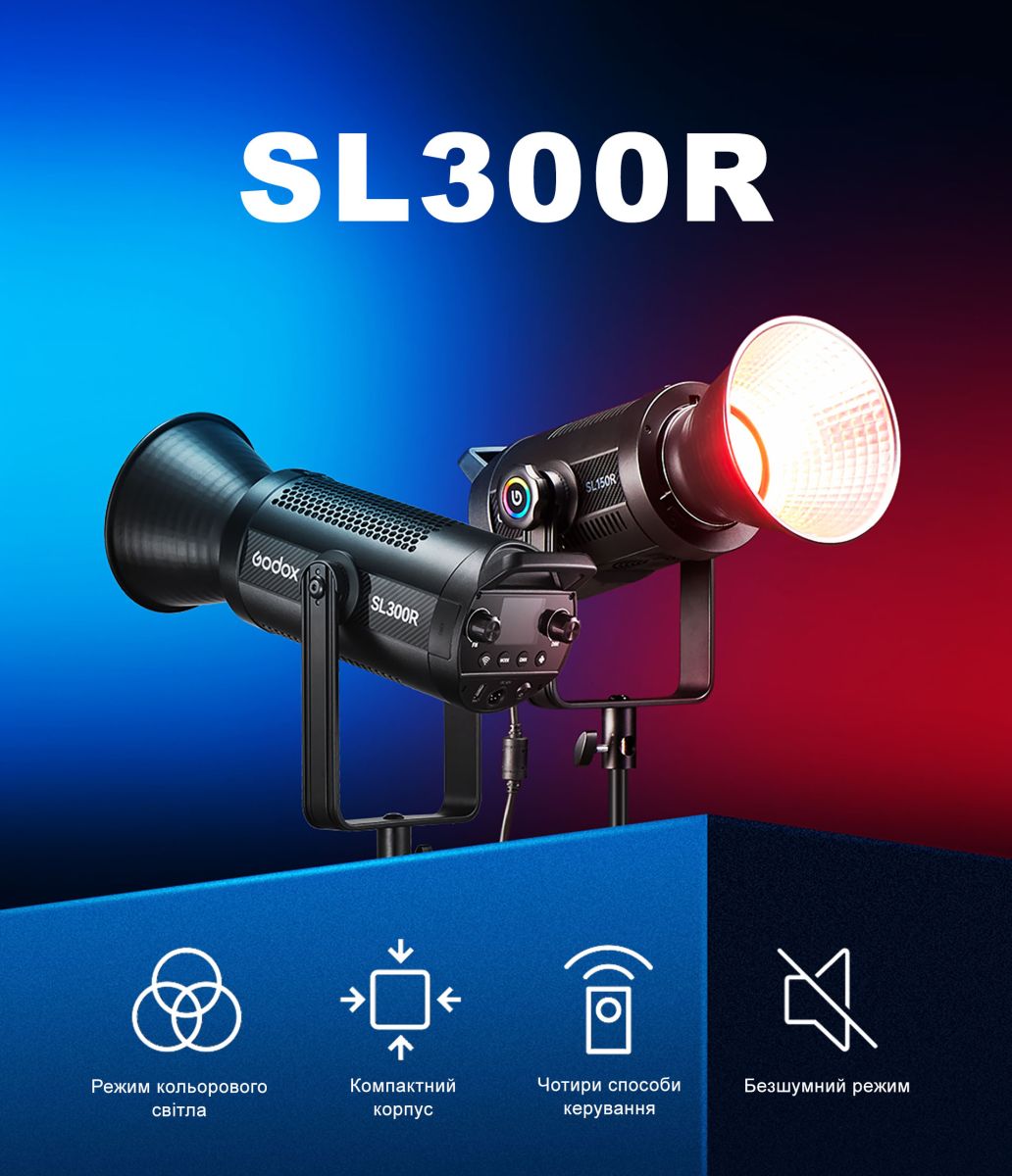 Расширяя линейку светодиодных моноблоков, Godox SL300R RGB LED Light предназначен как для создателей контента, так и для видеопроизводства. Обладая яркостью 43 300 люкс на расстоянии 3,3 дюйма с включенным отражателем, этот мощный светильник также обеспечивает переменный диапазон цветовой температуры 2500–10 000 К с очень высокой точностью цветопередачи. Затемнение от 0 до 100 % позволяет точно регулировать мощность прибора, а для имитации различных творческих образов предусмотрены 14 уникальных специальных эффектов. Почти бесшумная система охлаждения подходит для записи звука на съемочной площадке, а в светильнике также используется конструкция Bowens S-mount, позволяющая использовать широкий спектр модификаторов света.