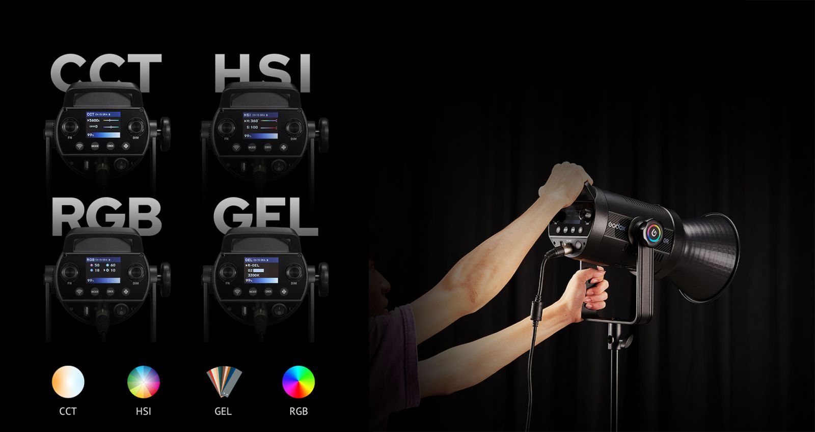 Три режима цветного освещения, в которых цвет регулируется во всей гамме спектра 360°, а также поддержка имитации 60 фильтров геля вдохновят на увлекательное взаимодействие с миром цвета.