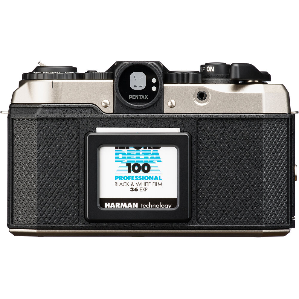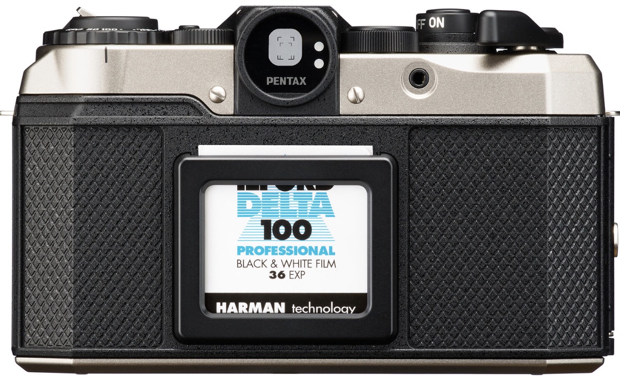 Pentax отмечает, что камера поддерживает широкий диапазон чувствительности пленки ISO (50, 100, 125, 160, 200, 400, 800, 1600 и 3200) и имеет классический держатель на задней крышке, куда можно положить конец упаковки с пленкой.