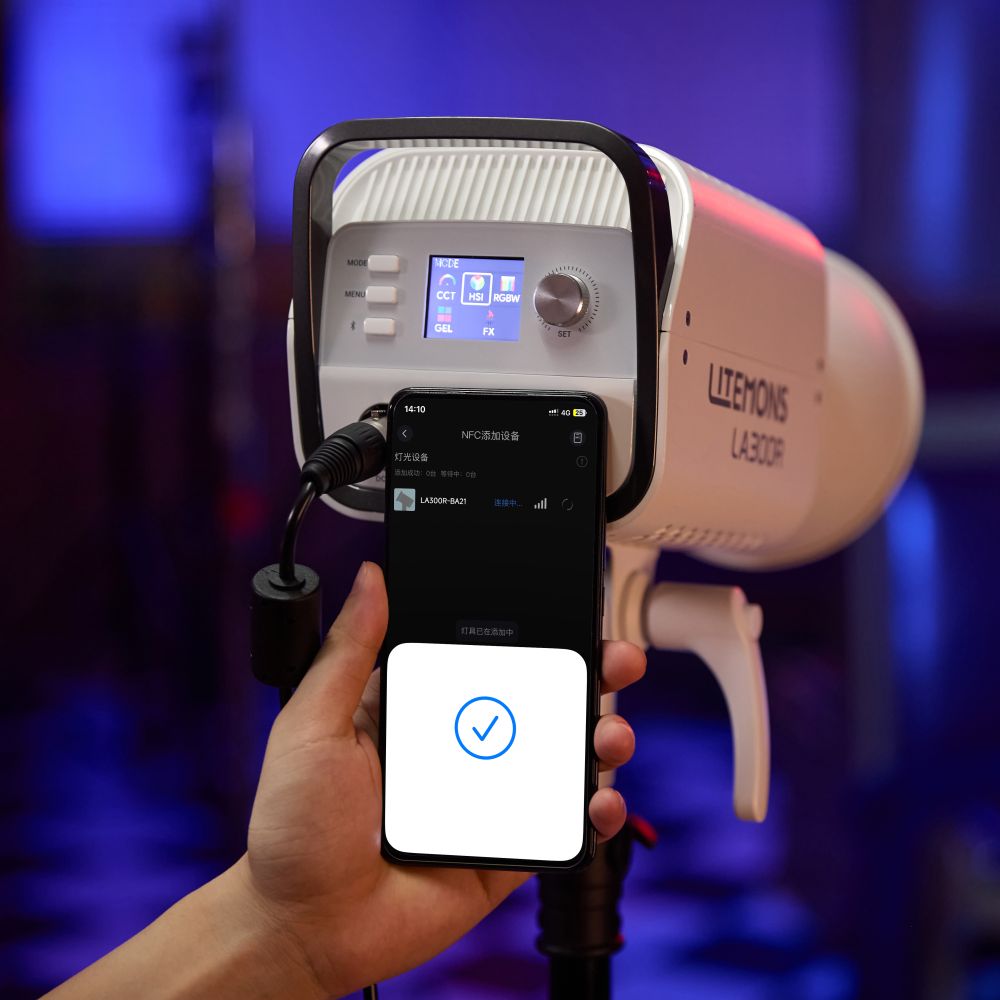 Подключение NFC: Подключение NFC позволяет легко подключить свет к приложению Godox. Просто поднесите свой смартфон к месту NFC на задней части устройства, и приложение подключится автоматически. Приложение позволяет управлять светом через Bluetooth на расстоянии до 30 метров. Это значительно упрощает синхронизацию и управление несколькими светильниками одновременно, а также обеспечивает дистанционное управление различными световыми эффектами.