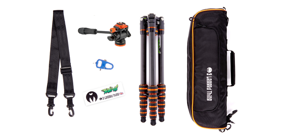 Комплект поставки | Штатив PUNKS Brian 2.0 Carbon Fibre Tripod Многофункциональная видеоголовка AirHed Trinity с пластиной Arca-swiss Toolz - мультиинструмент, шестигранный ключ, ключ, кольцо для ключей, карабин и открывалка для бутылок Сумка-чехол и съемный, удлиняемый ремень для сумки |