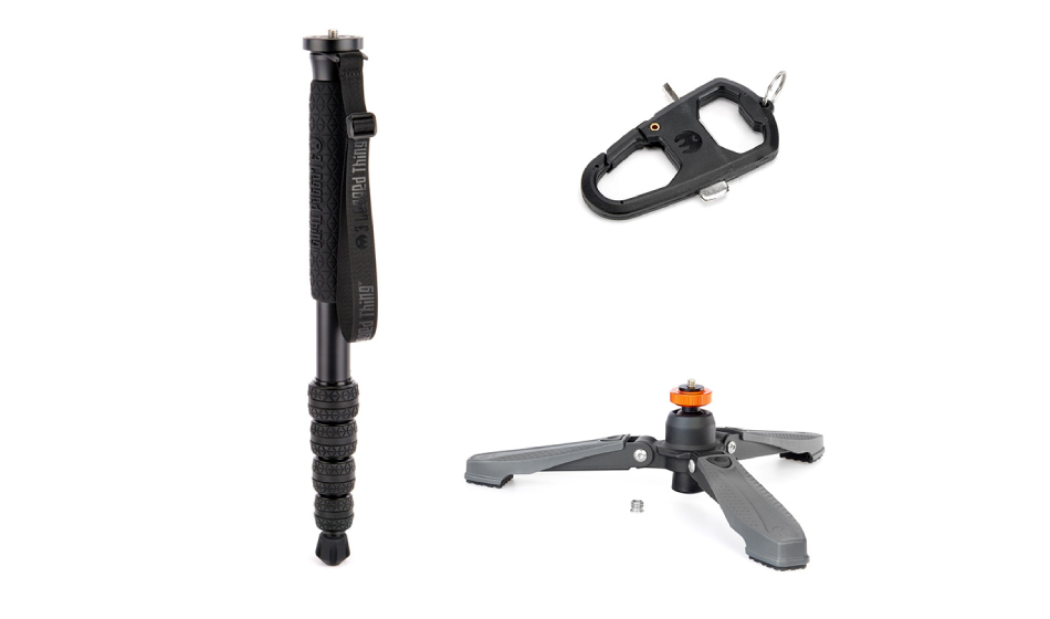 Комплект поставки | Монопод Punks Taylor 2.0 с удобным плетеным ремешком на запястье Карабин многофункциональный Toolz с шестигранным ключом, поворотным устройством и открывашкой для бутылок Docz прочный ножной стабилизатор / мини-штатив |