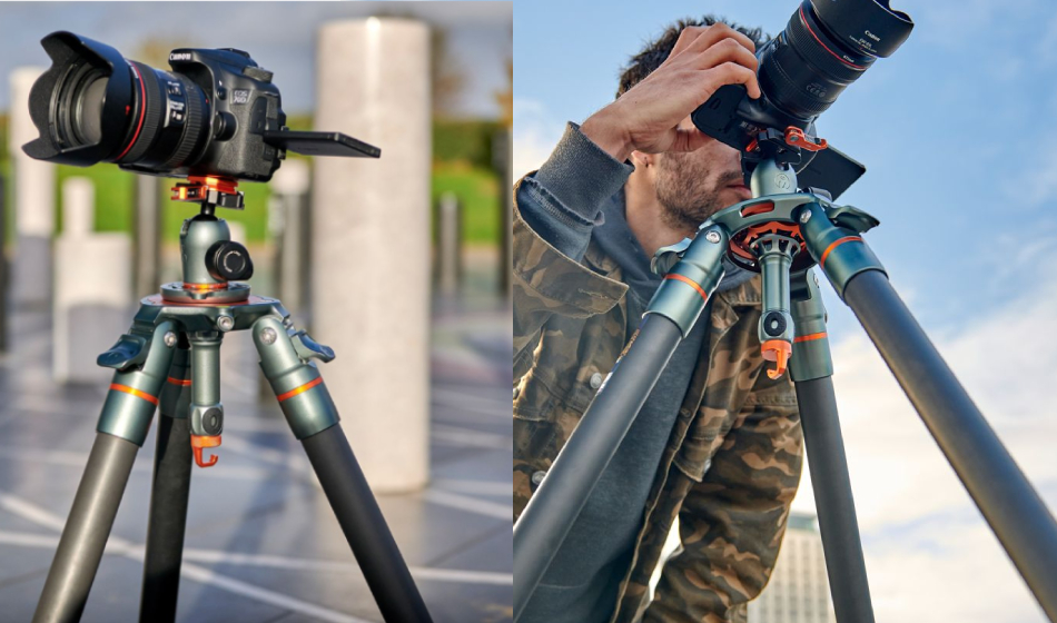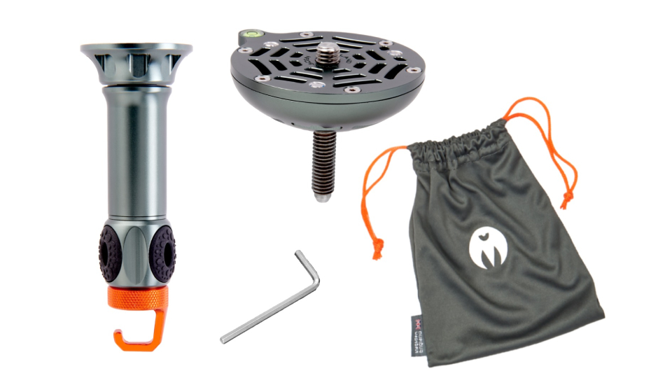 - Помогает пользователям достичь ровного горизонта на сложном рельефе без необходимости регулировать ножки штатива;
