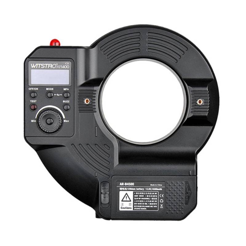 В качестве кольцевой вспышки AR400 имеет мощность 400 Вт с ведущим числом 118, перезарядку за 0,05–3,4 секунды и регулируемую мощность от 1/1 до 1/128. Благодаря встроенным светодиодам вы также можете использовать ее в качестве видеосвета 5600K с выходной мощностью 440 люкс на расстоянии 1,6 фута. Настройки отображаются на ЖК-панели управления осветительного прибора. AD400 работает от внутреннего литий-ионного аккумулятора, который обеспечивает до 245 вспышек на полной мощности при полной зарядке. Для беспроводного управления доступен дополнительный пульт дистанционного управления.