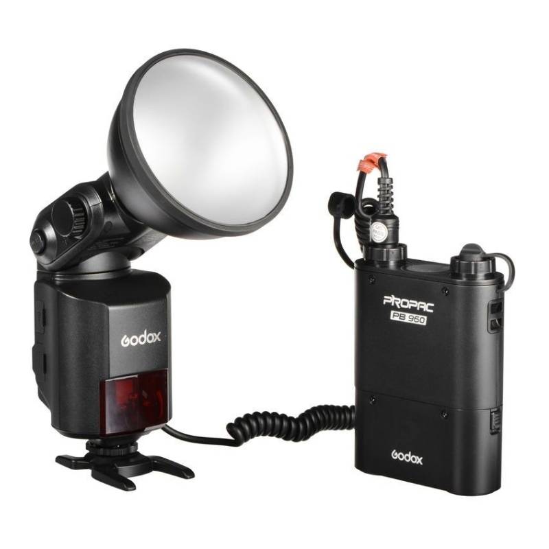 Генераторная вспышка Godox AD360II для Canon с внешним батарейным блоком с возможностью работы в E-TTL-режиме как ведущей так и ведомой вспышкой, дополнительным функционалом является возможность использовать модель для Canon в связке с системой Nikon при подключении удаленно.