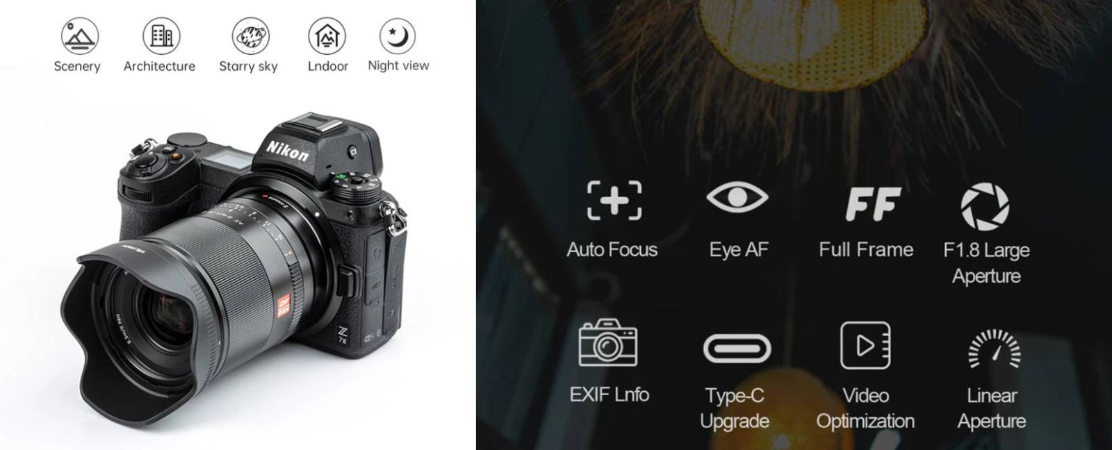 Объектив Viltrox 24mm F1.8 — широкоугольный фикс-объектив с автофокусом для полнокадровых беззеркальных камер. Он оснащен стабилизацией объектива IS, передачей информации EXIF и обновлением по USB.