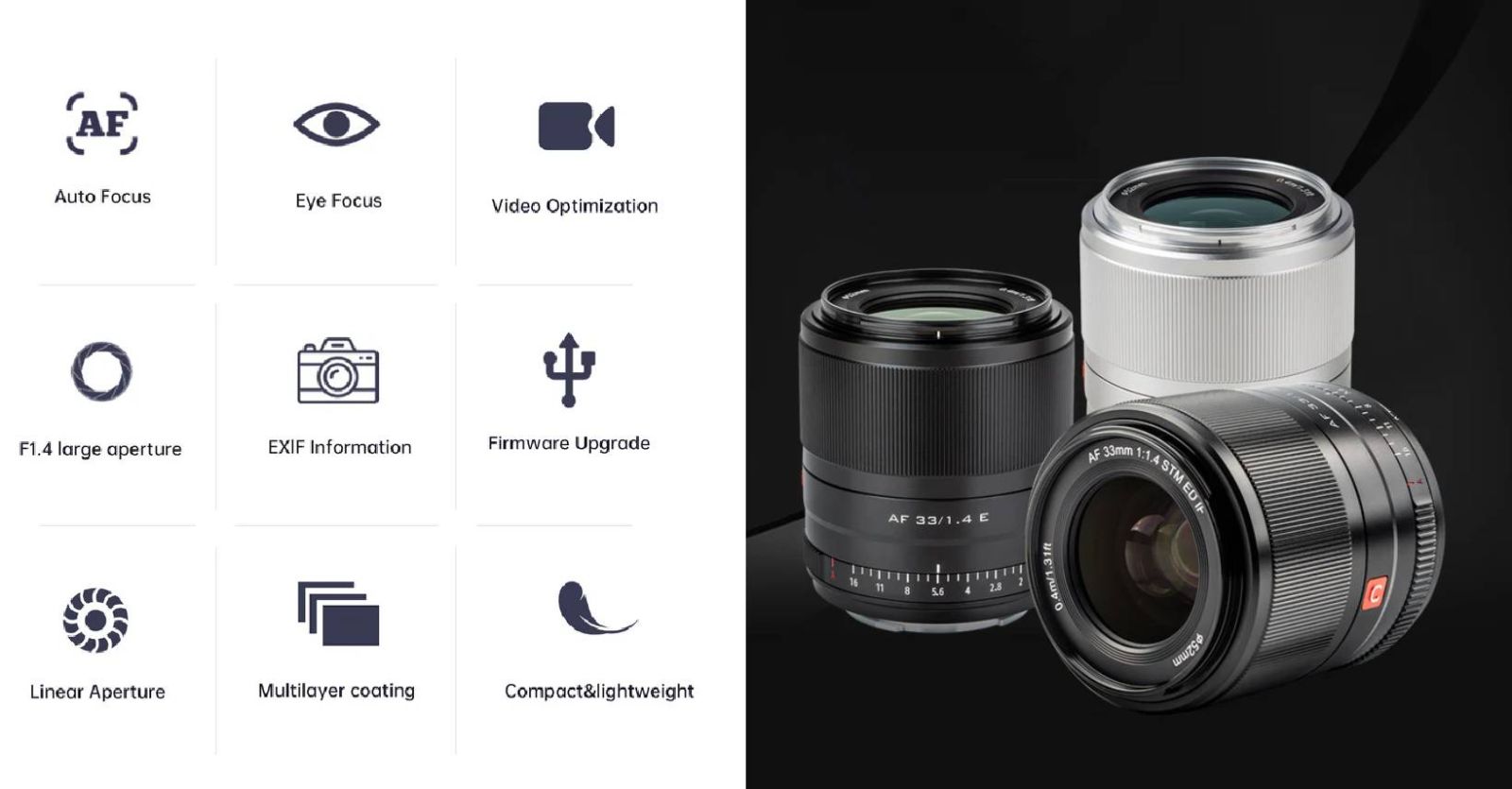Viltrox AF 33mm F1.4 — широкоугольный объектив с большой диафрагмой, обеспечивающий эквивалентное фокусное расстояние 50 мм. Поддержка автофокусировки, нескольких режимов съемки камеры, записи информации EXIF и обновления прошивки.