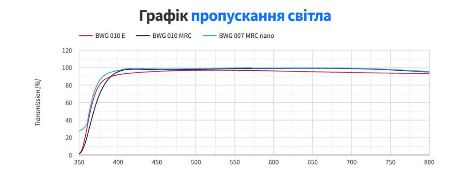 Этот фильтр прозрачен и пропускает весь спектр света. Он не защищает от УФ- или инфракрасного излучения, а служит лишь защитой передней линзы объектива.
