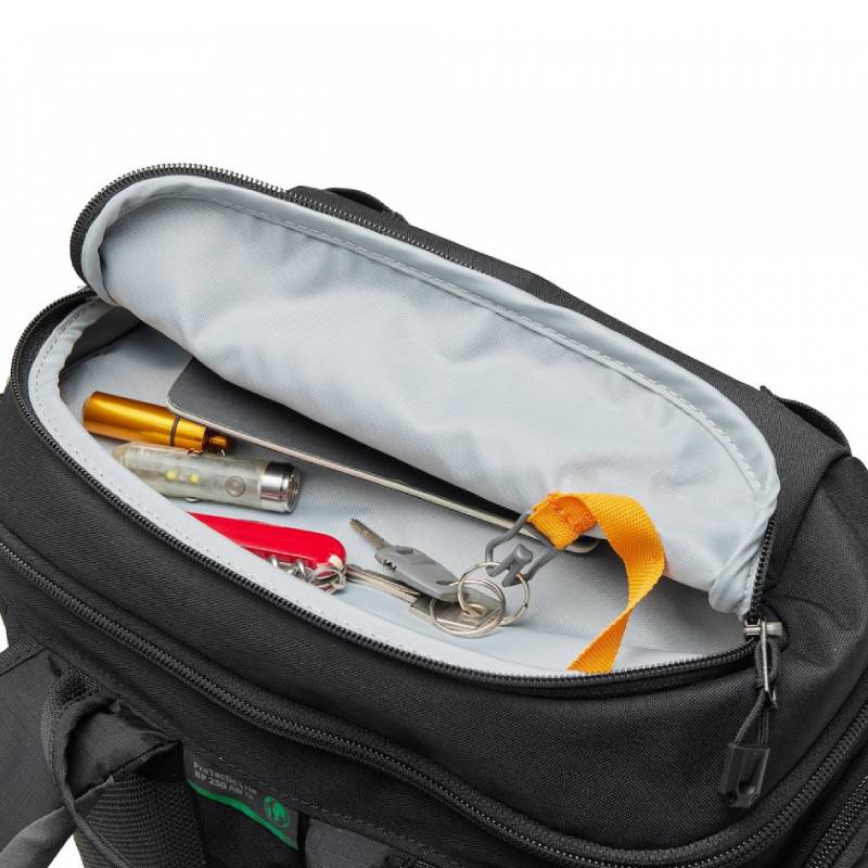 ProTactic Lite BP 250 AW III оснащен большим боковым карманом для полного доступа к внутреннему пространству, включая защитный рукав CradleFit™, который вмещает MacBook Pro до 16 дюймов. Рюкзак можно дополнить вставками и органайзерами, такими как GearUp Creator и боксы для камер или ProTactic Lite SLX. Вертикально регулируемый разделитель Highrise позволяет настраивать внутреннее пространство в соответствии с вашими потребностями, а верхний карман с карабином для ключей обеспечивает быстрый доступ к необходимым вещам.