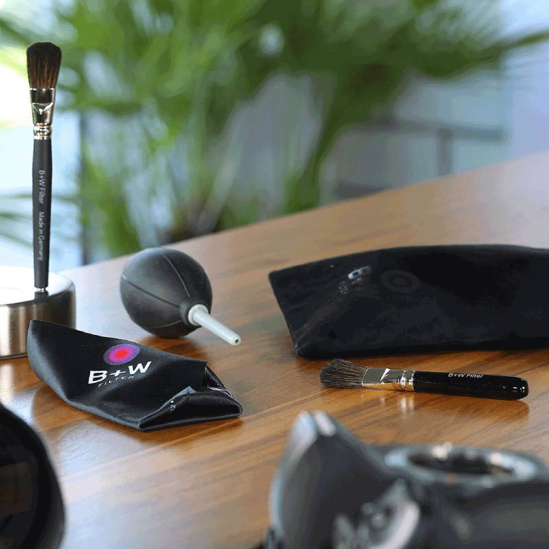 Этот набор для чистки B+W из 5 предметов — идеальный стартовый комплект для фотографов, которым нужно быстро и эффективно очищать оптические поверхности, такие как фильтры, объективы и другое оборудование. В него входят: чистящая салфетка размером 20 x 18 см, щеточка длиной 120 мм, спрей для чистки объектива объёмом прибл. 50 мл, воздушная груша длиной 15 см и чехол. Эти аксессуары — отличный способ удалить пыль и отпечатки пальцев, чтобы обеспечить оптимальное качество изображения с объективов или фильтров.