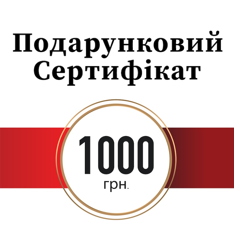 Подарочный сертификат на сумму 1000 грн. Подарочный сертификат — это универсальный подарок, который Вы можете сделать близкому человеку, другу, сотрудникам, клиентам или партнёрам. Человек, которому Вы сделаете такой сюрприз, сам сможет выбрать в нашем интернет-магазине нужный ему подарок.