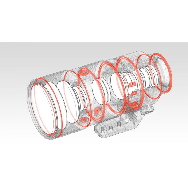 Одной из известных проблем телеобъективов является хроматическая аберрация, которая эффективно подавляется благодаря четырем оптическим элементам из низкодисперсионного стекла (ED) и двум элементам из стекла сверхнизкой дисперсии (Super ED). Проблема с потерей цвета была полностью решена, поэтому изображение получается максимально резким и четким.