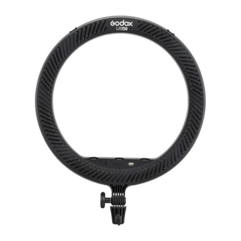 Кольцевой светильник Godox LR150 легкий и удобный для транспортировки. Он легко устанавливается на штатив, а встроенное крепление для смартфона позволяет использовать его для мобильной съемки и влогов. Питание через USB делает устройство универсальным и удобным для работы как в студии, так и на выезде.