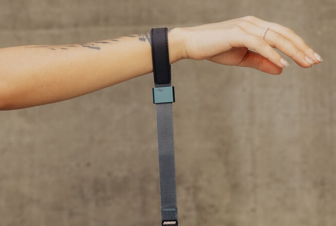 Петля ремешка фиксируется в открытом положении или плотно затягивается на запястье для дополнительной безопасности. Когда ремешок не используется, его можно компактно свернуть или носить как браслет. Магнитный фиксатор удерживает свободный конец ленты, чтобы ремешок всегда был под рукой.