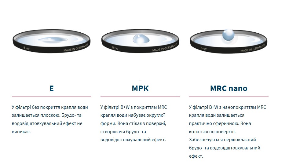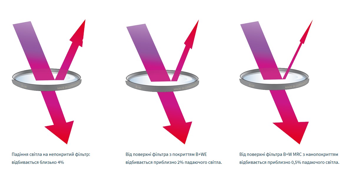 B+W MRC (Multi-Resistant Coating) – це 8 шарів просвітлення на кожній стороні фільтра. Але найцікавіше не кількість шарів, а їхня якість: