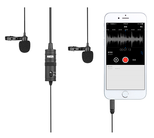 Мікрофон для смартфона оснащений чотириметровим шнуром, що дозволяє оператору або звукорежисеру відійти на достатню відстань від об'єкта зйомки. Живлення знаходиться в окремому силовому блоці з можливістю відключення. Самі петлички можуть бути закріплені на елементах одягу чи інтер'єру за допомогою зручної та надійної кліпси.