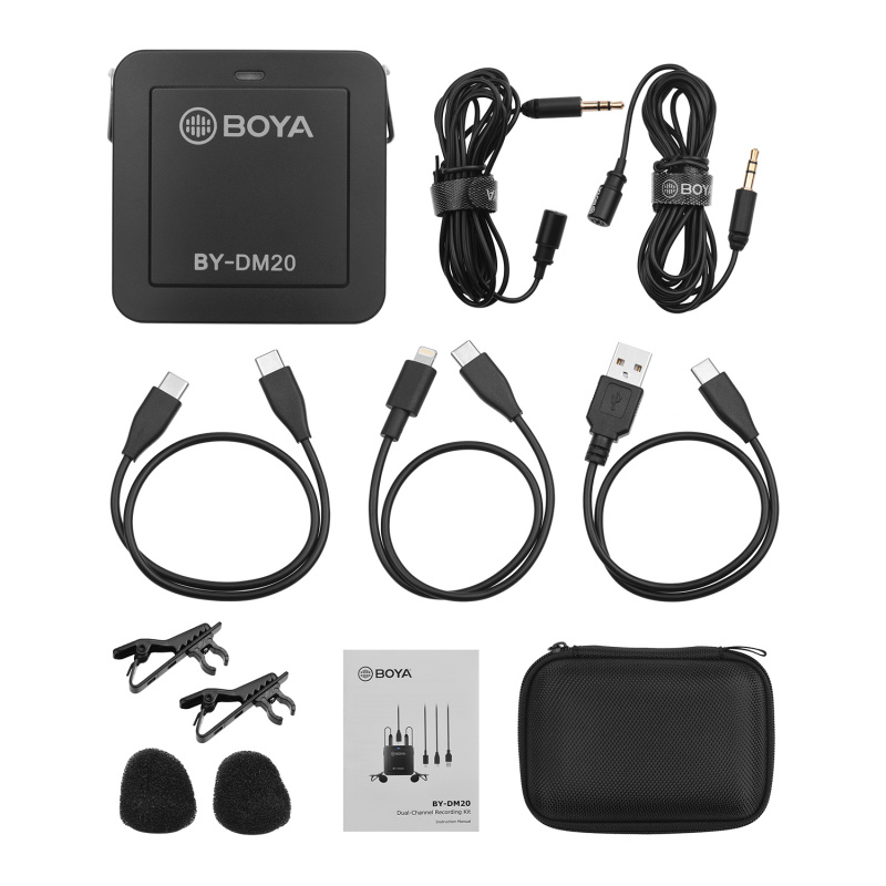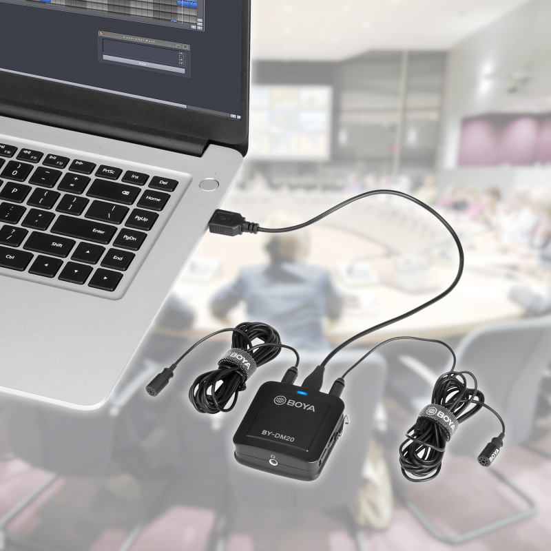 Двоканальний запис з виходом 3,5 мм для навушників: BY-DM20 - це багатофункціональний комплект запису з 2 мікрофонними/лінійними аудіовходами та 1 аудіовиходом.
