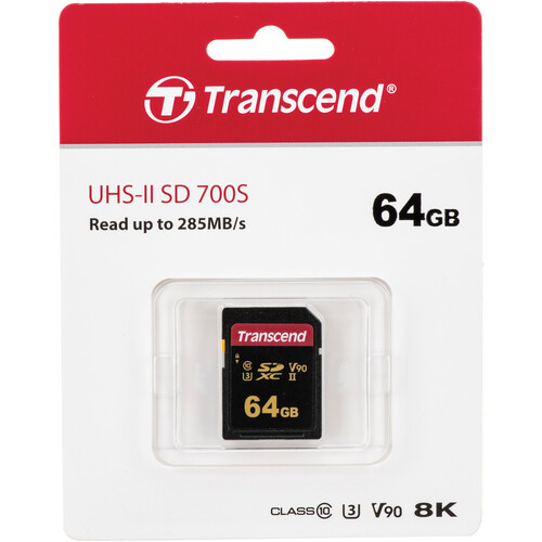 Карти пам'яті Transcend SDXC/SDHC 700S відповідають як стандарту UHS-II Speed Class 3 (U3), так і вимогам UHS Video Speed Class 90 (V90) для запису відео у форматі 8K Ultra HD, забезпечуючи швидкості читання та запису до 285 та 180 МБ /с, відповідно.