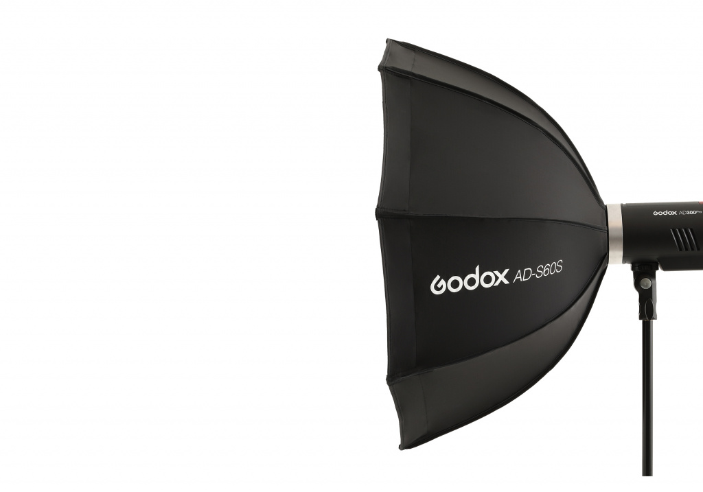 Ми додали в комплект спеціальний софтбокс Godox AD-S60S з сріблястою тканиною всередині і параболічною відбиваючою формою, щоб забезпечити м'яке освітлення і контрольований контраст. Софтбокс має власне кріплення Godox, завдяки якому його можна безпосередньо прикріпити до AD300Pro, поставляється з зовнішнім і внутрішнім розсіювачами для регулювання ступеня розсіювання, включає сотову насадку для створення спрямованого променя, а також проріз на блискавці для кабелів і розміщення шнура збоку.
