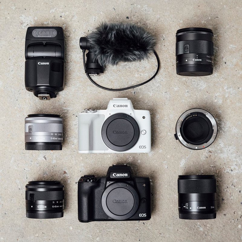 Canon EOS M50 Mark II – легка компактна системна камера із широкими можливостями. Це оптимальний вибір для влогів, сторісів, створення фото та відео контенту та ведення трансляцій.